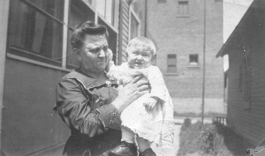 | This photograph was taken several years later. It also was taken in Rochester, but this time she is with her grandaughter Margaret Allen (mom). The date was probably 1919 or 1920. |