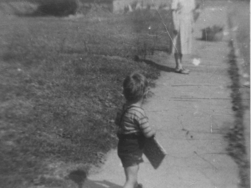 10. This photograph seems to be earlier, and could be in a different location. Mom told me several years ago that the young boy was me, though there is a possibility it could be Andy. The women, unfortunately, can't be identified - it could be Mom. There seems to be a large basket or bucket on the sidewalk near her.